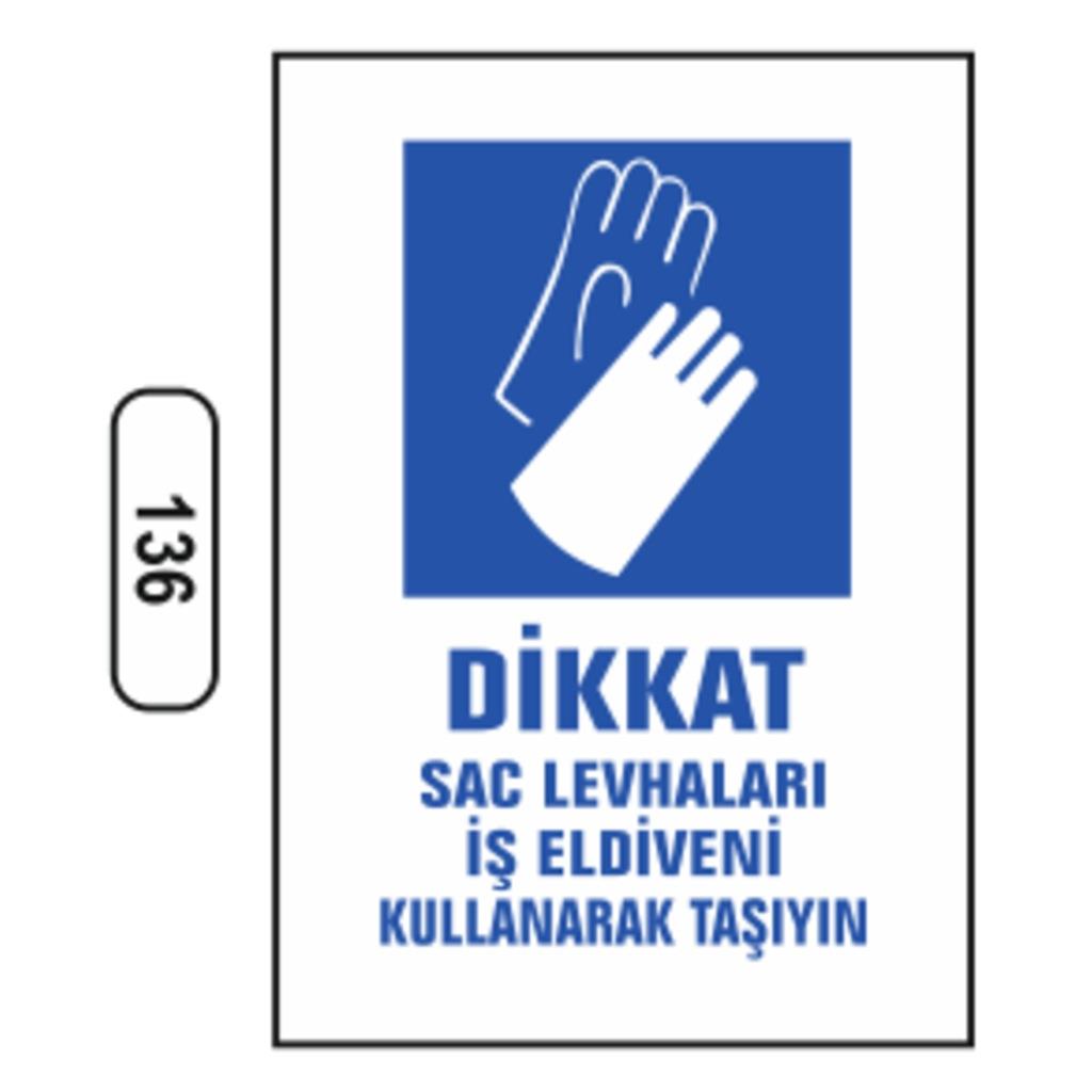 Ergündoğdu 136 Di̇kkat! Sac Levhaları İş Eldi̇veni̇ Kullanarak Taşıyın PVC Uyarı Levhası 25 x 35 cm (TM02264)