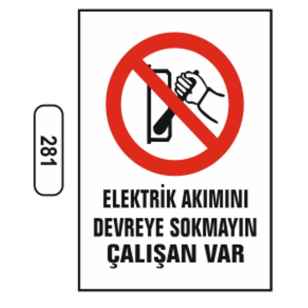 Ergündoğdu 281 Elektri̇k Akımını Devreye Sokmayın, Çalışan Var PVC Uyarı Levhası 25 x 35 cm