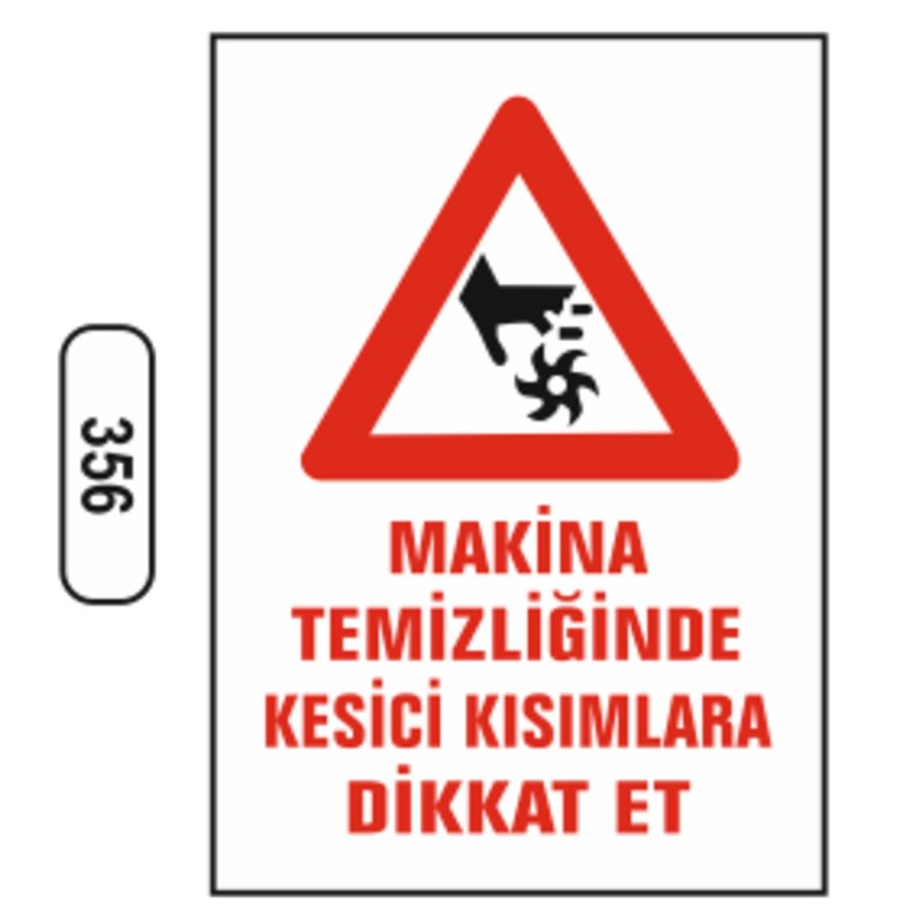 Ergündoğdu 356 Maki̇na Temi̇zli̇ği̇nde Kesi̇ci̇ Kısımlara Di̇kkat Edi̇n PVC Uyarı Levhası 25 x 35 cm (TM02241)
