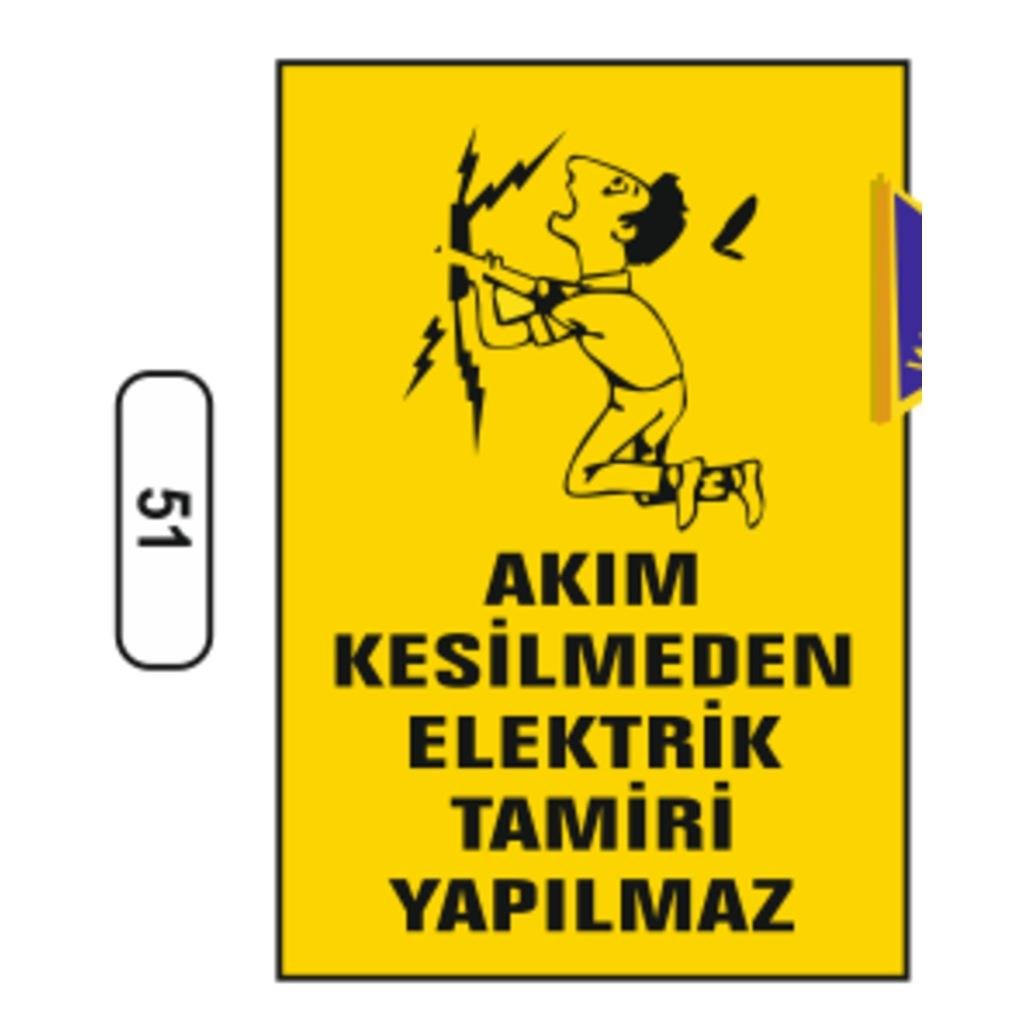 Ergündoğdu 51 Akım Kesilmeden Elektrik Tamiri Yapılmaz PVC Uyarı Levhası 25 x 35 cm (TM02309)