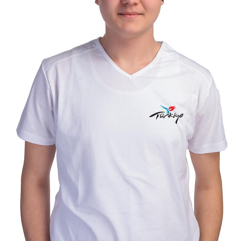 Formteks Baskılı Türkiye Logolu Omuz Garnili V yaka Beyaz Tişört